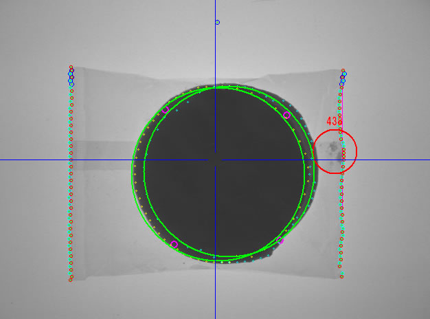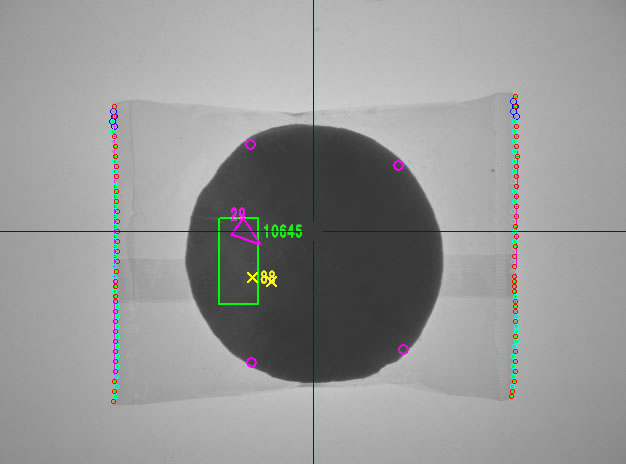 柔らかい包装の形状(検査エリア)でも、毎回の撮像毎に自動で設定されます。