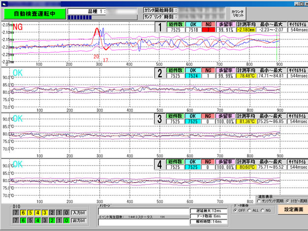 - 変位センサー、温度センサーを使ったシール状態検査